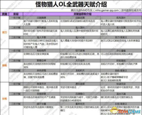 怪物猎人OL全武器天赋详解,怪物猎人OL中每种武器都有三阶天赋,来看看游戏中的全武器天赋效果吧。
