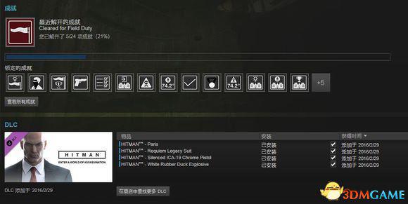 关于DLC的问题,有些同学购买过杀手6后只有一个内容,而其他同学的却有4个内容。这是因为预购的关係,杀手6的预购奖励为杀-手4中的安魂曲包,安魂曲包包含了一把消音手-枪、一套白西服及一个塑胶爆-炸鸭子。