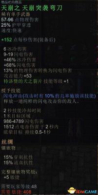 基材选择Assault Cutlass,即突袭弯刀,然后,选择前缀Skyfallen天崩,后缀of Fallen Skies天崩之即可。此处如果把突袭弯刀换成水晶剑,就可以得到上面那把变态了。