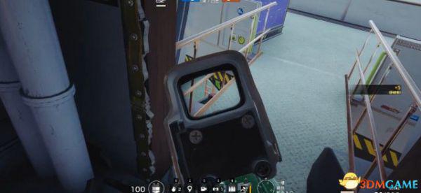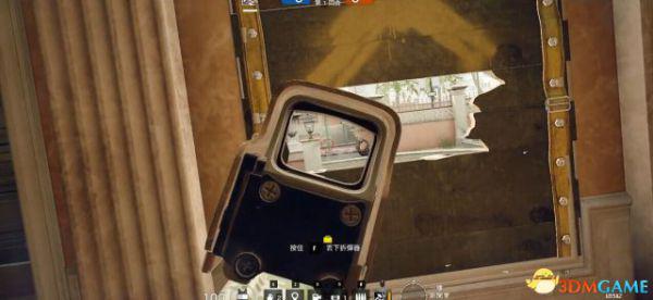 红房侧翼出生点,两个卡枪预瞄位置,地方位于红方二楼尽头木门,用摄像头听声音确认地方出生点,此点位还有其他用法,开动脑筋,你就能想到。