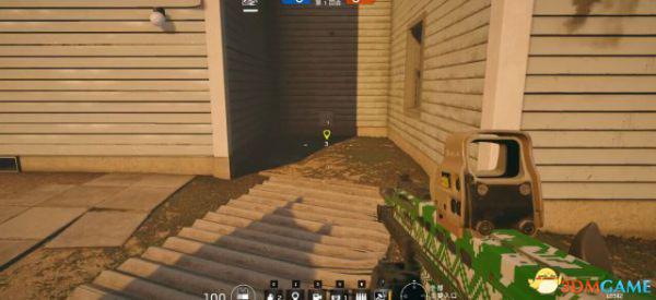 后门出生点,下图为进攻方跑过来看到的样子。。。。。死伤无数。后门左边窗户,2楼阳台再来些队友,往往战斗就结束在此。注意第一张图右侧也会来人,为了让大家看清楚预瞄点,所以我站近了一些,正常要站远一些。破这个点的方法很简单,出生点左侧有。。。