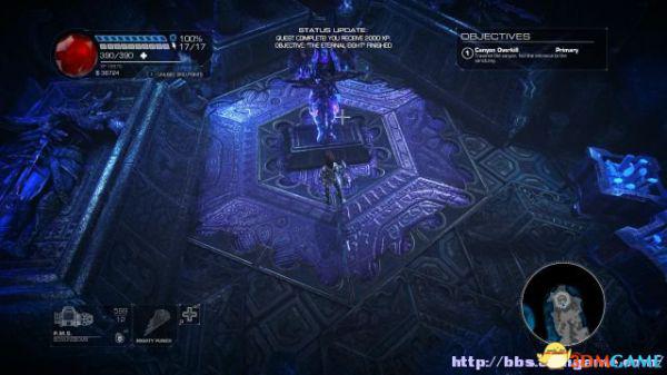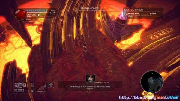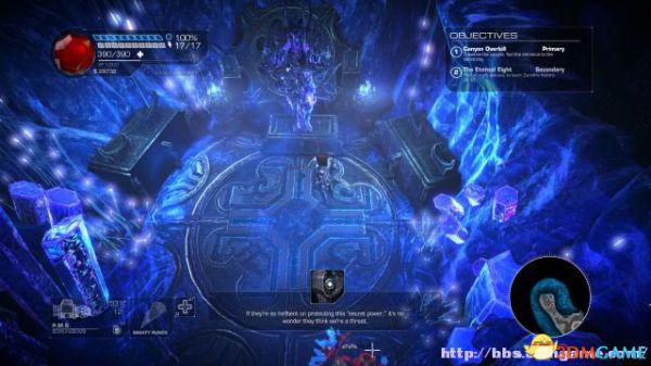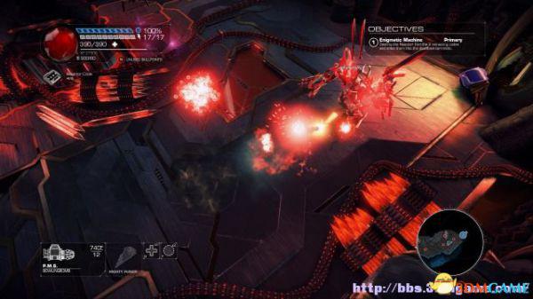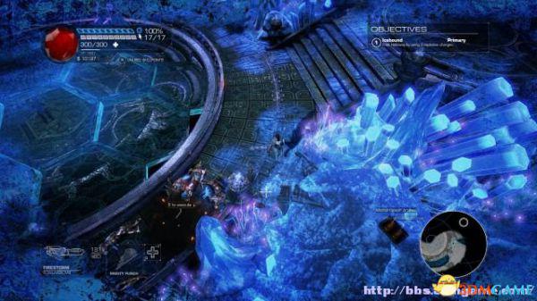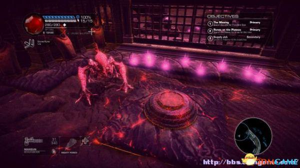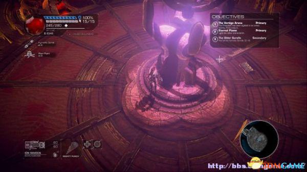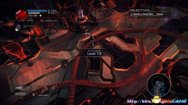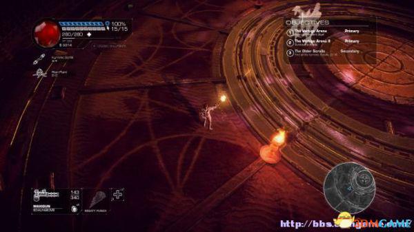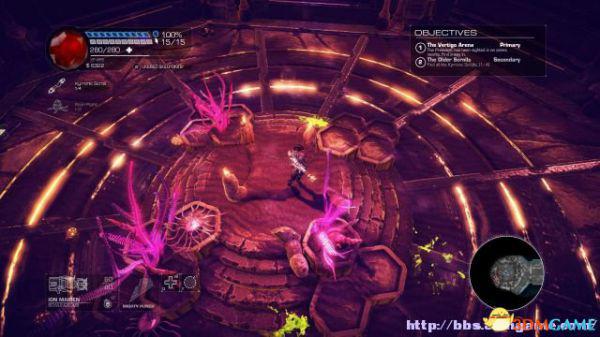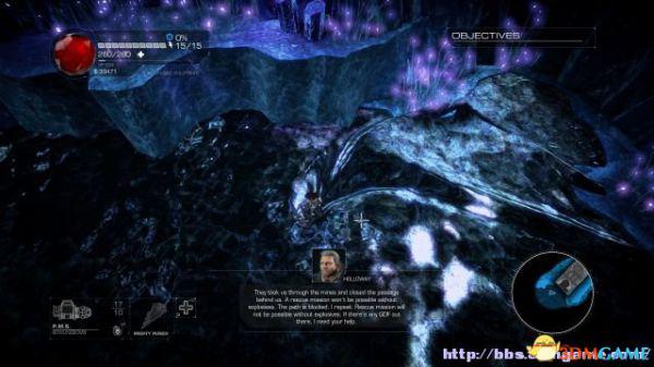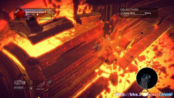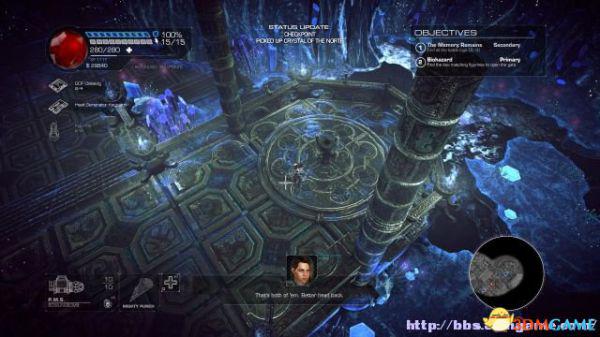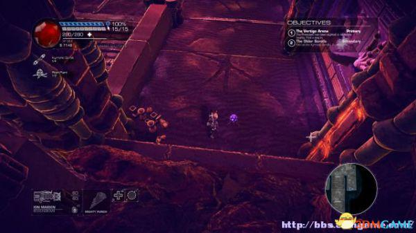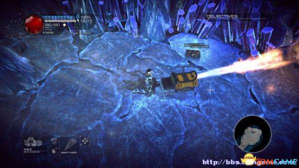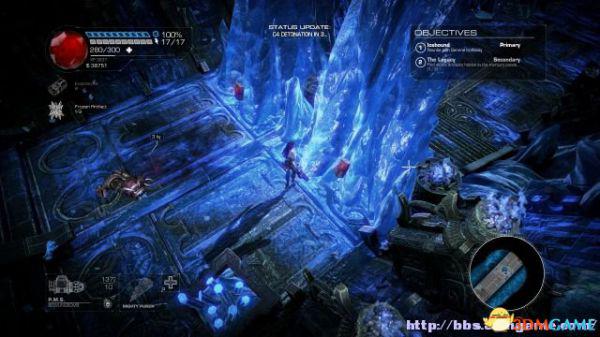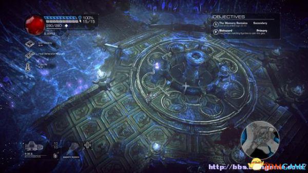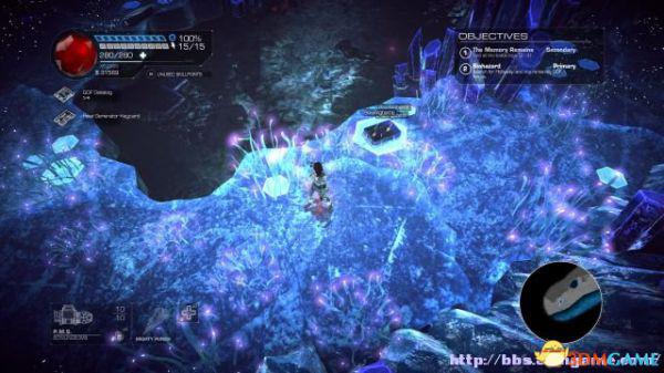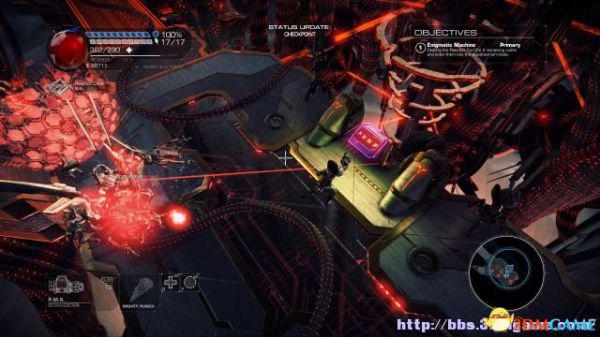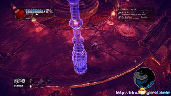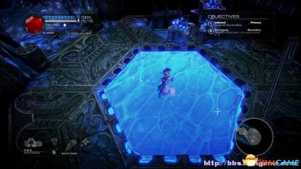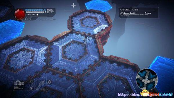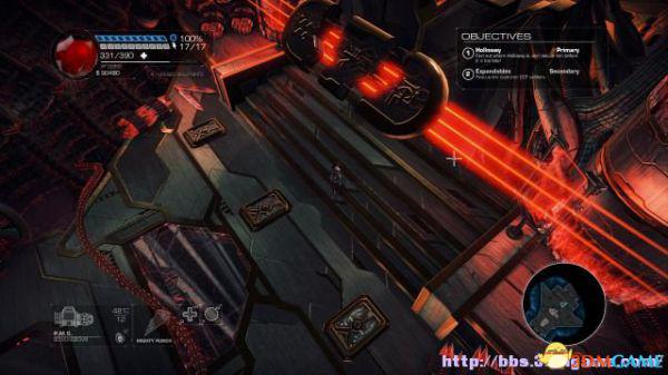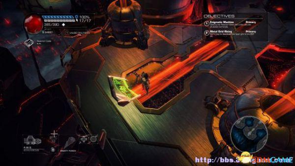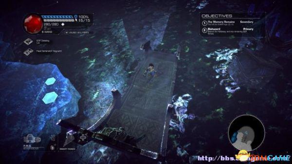 接着走至北部,看见一个仪器(升降机)后按E键,升往上层,然后就可以操纵控制台升起另外半截的桥梁(这区域内有一个使用脉冲炮的挑战关,但是要在后期将所有激光闸关闭后才能让夏莉进入)。