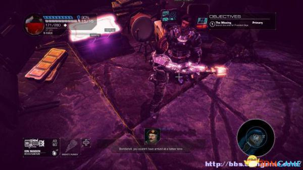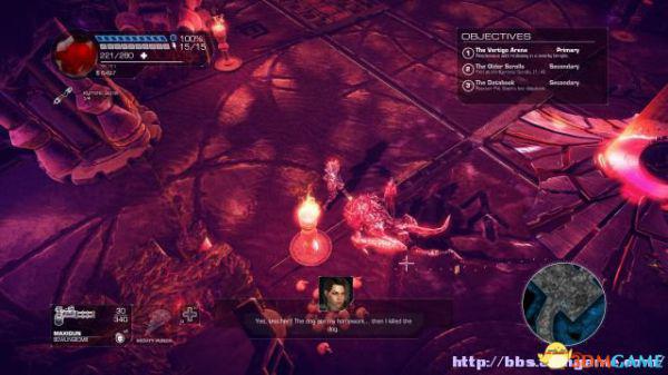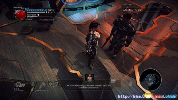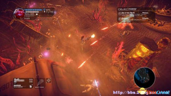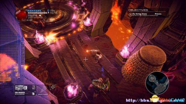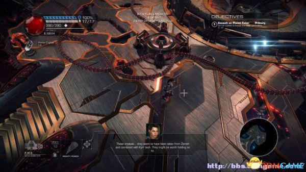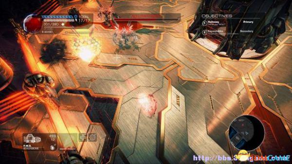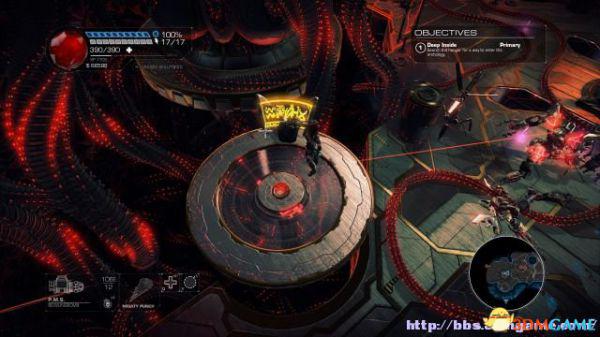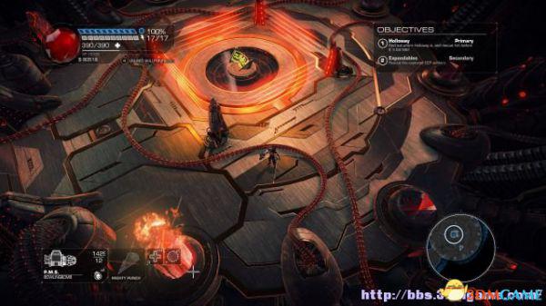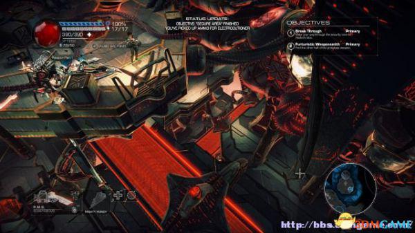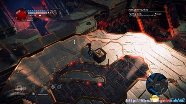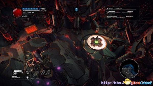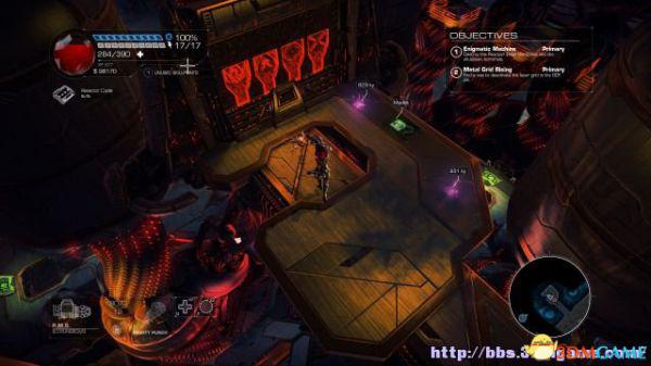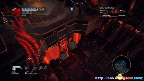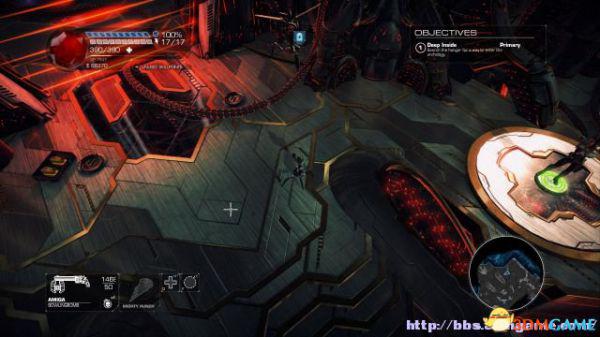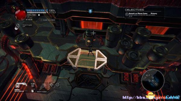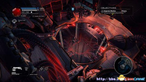 这时候通过东北面的杂物可以跳到上方平台,这时候按数字键6切换至左轮手枪,然后按鼠标右键让Amiga亲王东南面的控制台,操控控制台令到夏莉所在的平台升往更高层。穿过东北面的大门可以到达另一个区域。