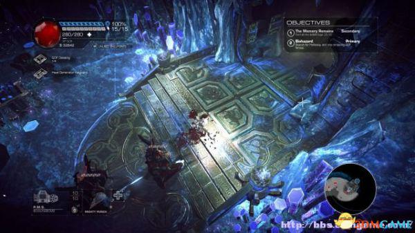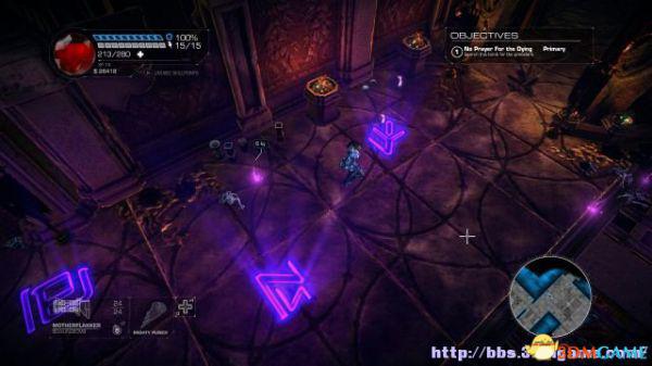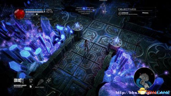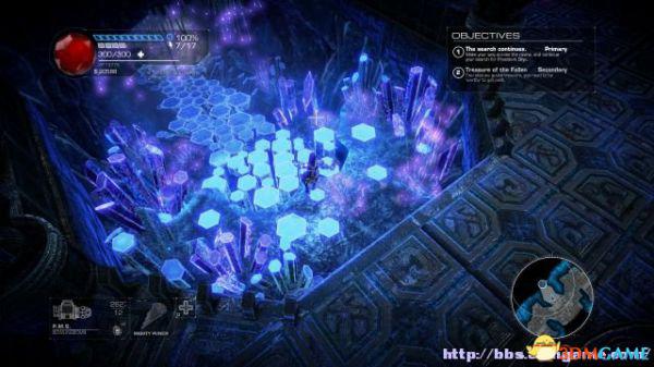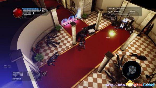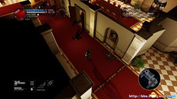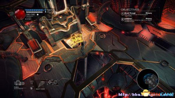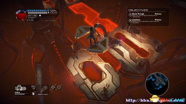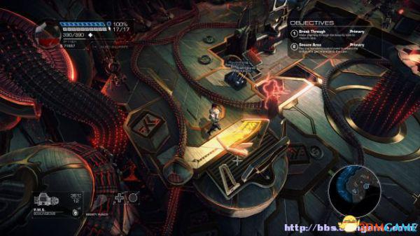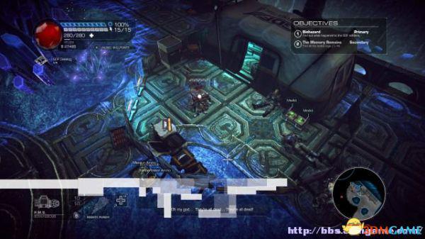 step1.去到左后方的房间内,夏莉会找到第一个秘密,可是出口会被激光闸封住,这时候切换武器为左轮,然后让Amiga前往东北面的装置前解开激光闸。