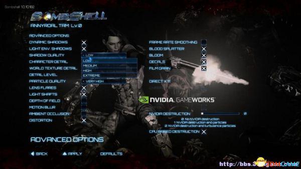NVIDIA专属设置:调整NVIDIA场景物理破坏的程度,可以选择基于CPU的情况。