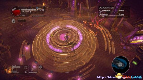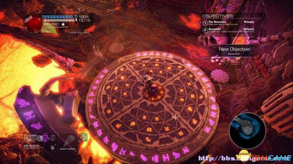 step5.接下来去到西北面熔炉北面的观望台,在这里可以发现一个操控台,激活后,可以延伸出下方桥梁(只有半截)。