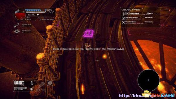 在最高处会发现一个需要使用散弹枪的挑战关卡。