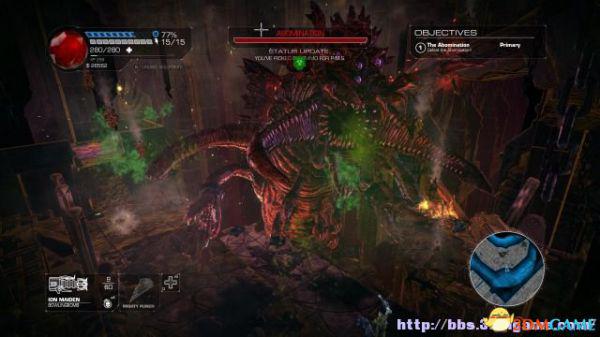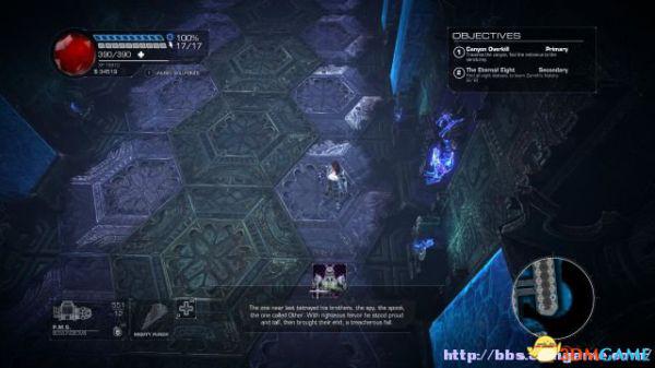 step8.夏莉来到一个战场当中看见了被heske改造了的父亲,机甲霍罗伟其实与之前遇到的巨型机械人一样,但是他会使用绿光盾牌,这时候你需要快速击碎,不然他会不断回血。