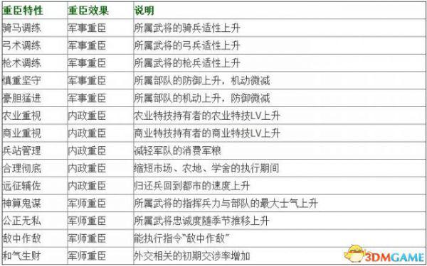 重臣特性的详细内容: