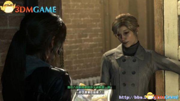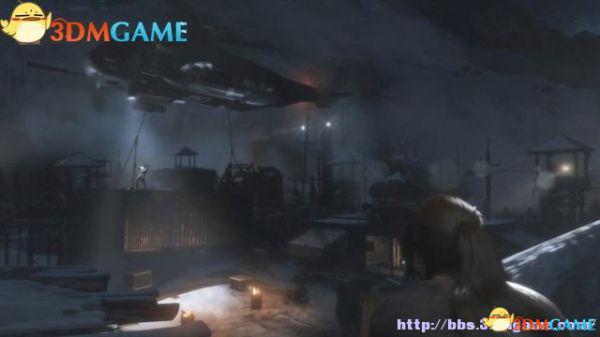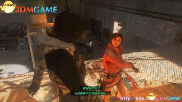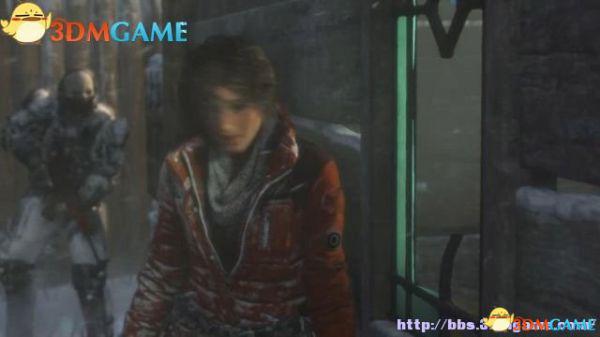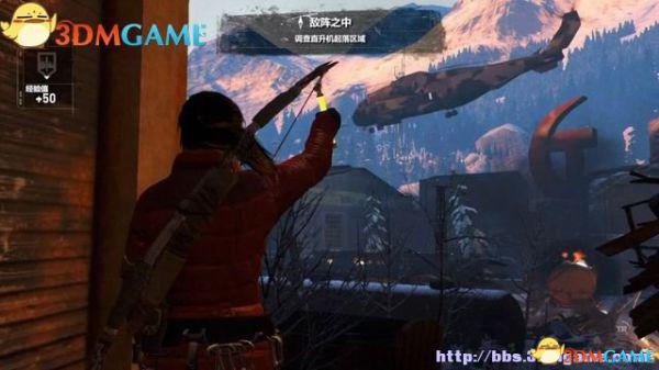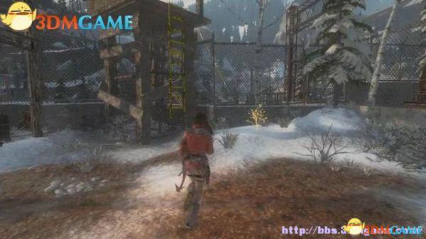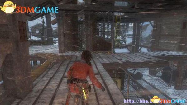 爬到墙上看到一架直升机降落到不远处的院落里,劳拉决定前去调查那里。