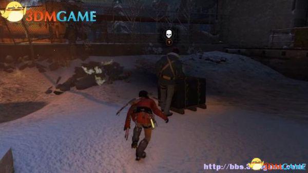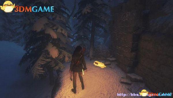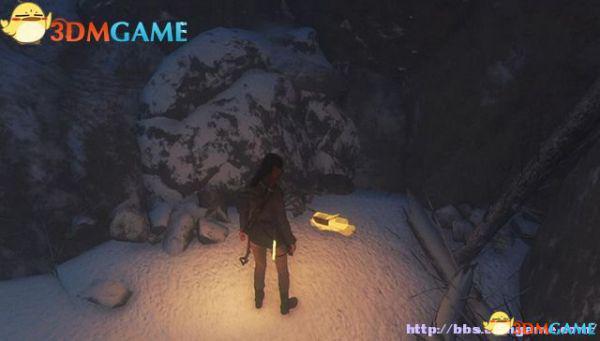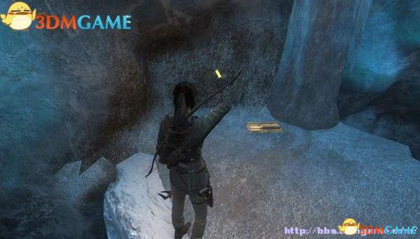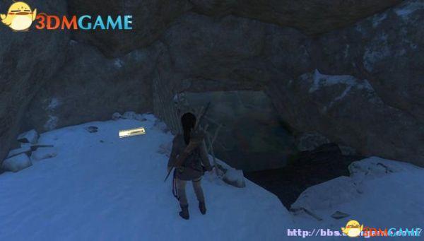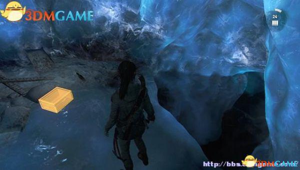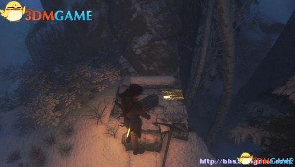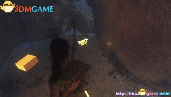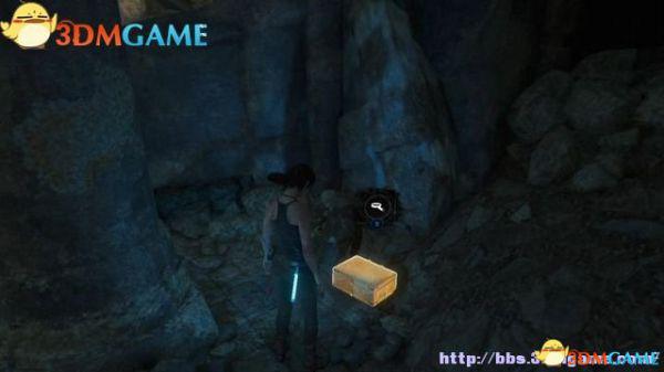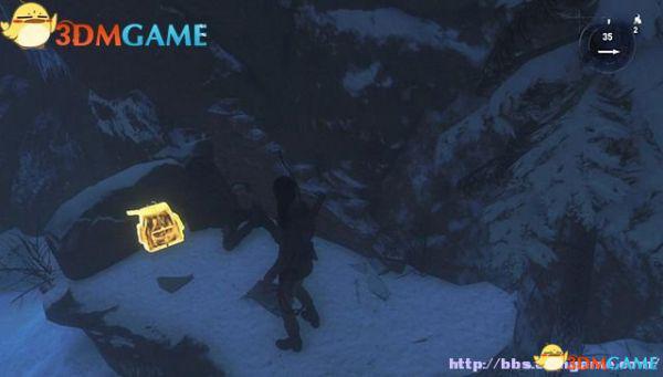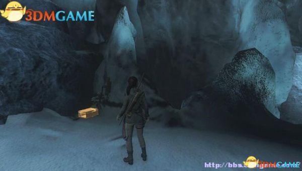 在完成古墓挑战后,滑索道下来,在崖底找到这只箱子。如图位置离出口通道的冰壁不远。