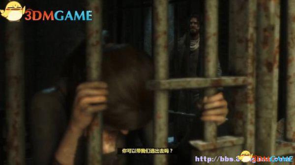来到牢房外,打开柜子拿回自己的装备。隔壁那男子请求带他离开,并说他熟悉这里的地势,知道劳拉在找的东西。