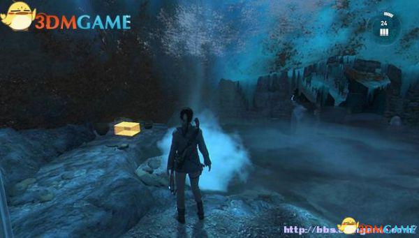在潜水后,水道的右侧有条岔路,由此游进一个小冰洞,找到箱子。