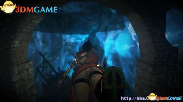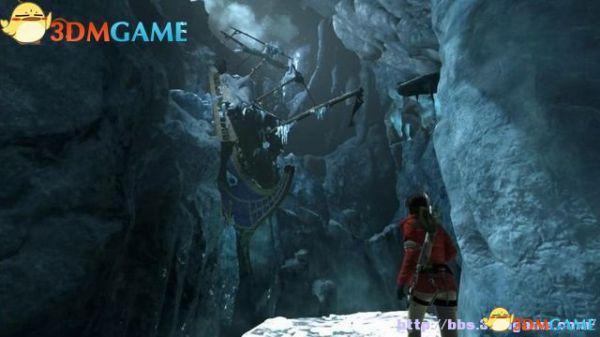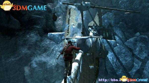沿山崖跳过去,发现冰洞里坠落着一艘拜占庭战舰,这个古墓挑战就是这艘冰船。