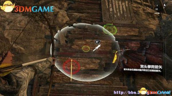 在主线剧情中劳拉会获得道具:宽头攀爬箭矢,使用这个道具可以通过将箭射进软木墙来进行移动。