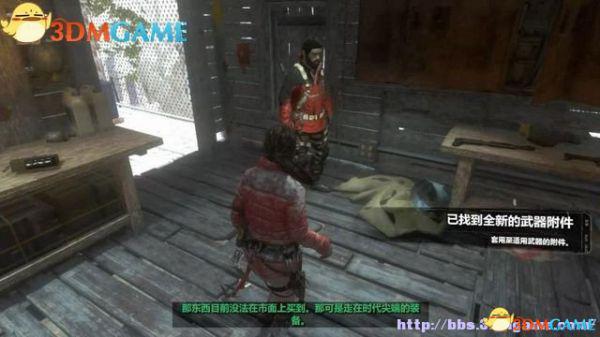 在塔前有间补给小屋,里面有位商人,花费此前收集的钱币可以购买武器和附件。笔者在这里买了手枪消音器和步枪雷射瞄准器。