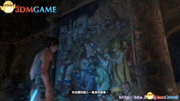 经过攀爬钻过一道石隙到另一边,继续攀岩,途中会收听到“圣三一”的通讯内容,他们认为抓取的俘虏是遗民的领袖,一定知道神圣之源事情。劳拉决定进入监狱找到那名囚犯。