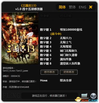三国志13 武将战法修改等四十五项修改器