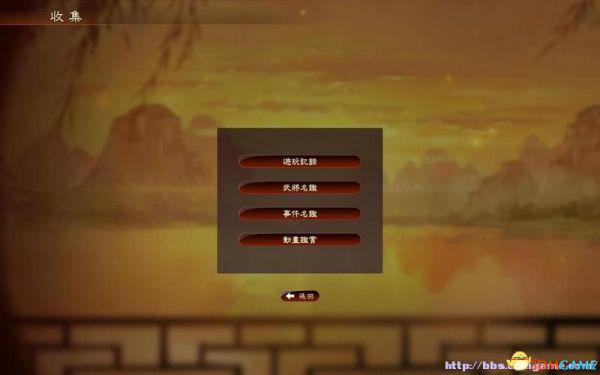 主菜单提供游戏设定、收集查看和武将编辑功能。