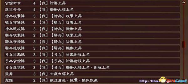 包括能力、特技、兵科、战法、特性、性格、嗜好。