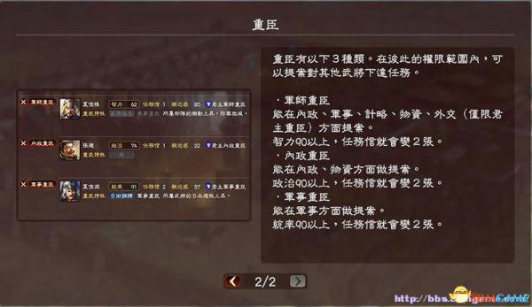 当作为君主时,玩家需要任命有重臣特性的武将为重臣。