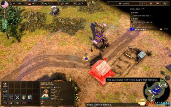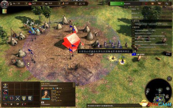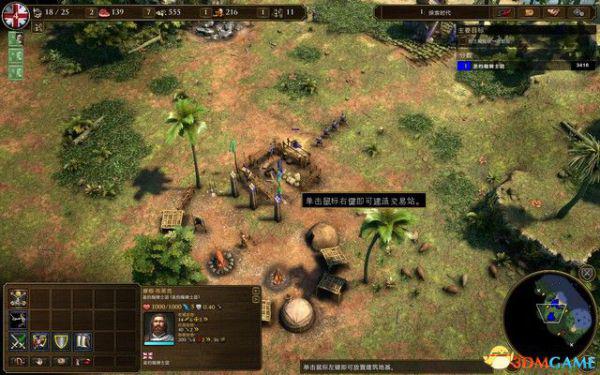 有了木材后,让英雄带着士兵去南边的土著营地,建造一个贸易站,