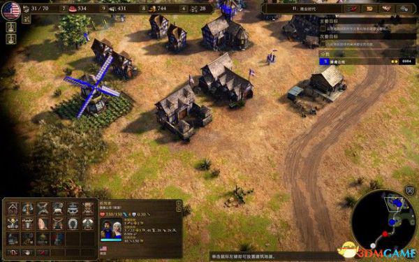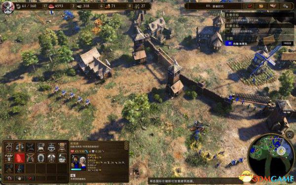 同时在基地造风车,爆农民,这样一来,食物、木材和金币就源源不断了。