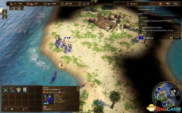 胜利条件是搜集3处海盗宝藏,一处在东南岛屿,两处在海盗基地所在的岛屿。