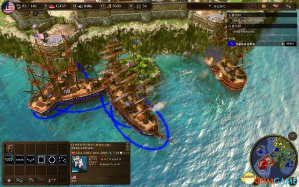 继续建造战船,制海权是这一关的关键,除了中型战船外,还需要建造3艘大型战舰,
