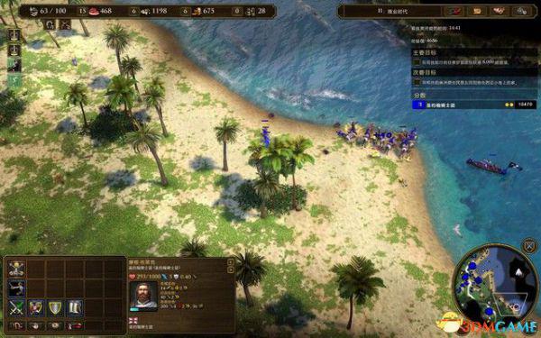 建造足够的军舰后,沿着海岸北上,可以直接攻击到敌军的城镇中心,