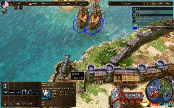 本关的获胜关键(捷径)在于海军,建造码头,然后招募3艘战舰(最贵的那一种),
