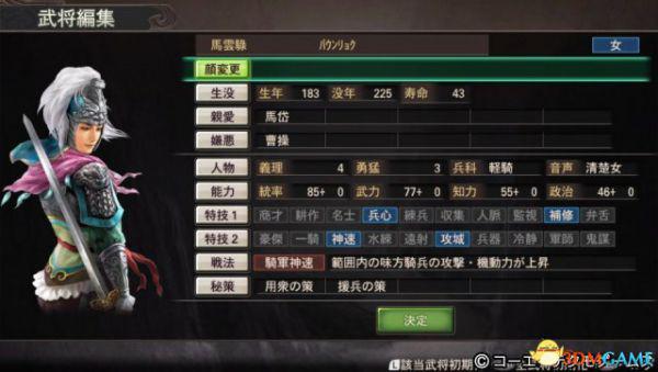 三国志13 能力值数据 马云禄能力值与前两代对比