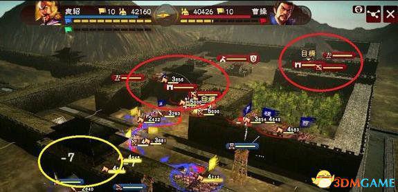 1、攻城战,内城可有2个城门,图内红圈处为内城城门,而且均有防御武器。