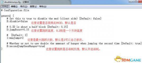 《我的世界》1.7.10 二连跳MOD顾名思义就是可以在游戏里连续跳2次,在MC里能多跳一下是可以解决很多问题的。关键时刻还能保命呢,另外MOD的配置文件功能也非常全面,可以自己设置能跳跃的次数,这就有点作弊了哦。建议大家保持默认2次就可以了。