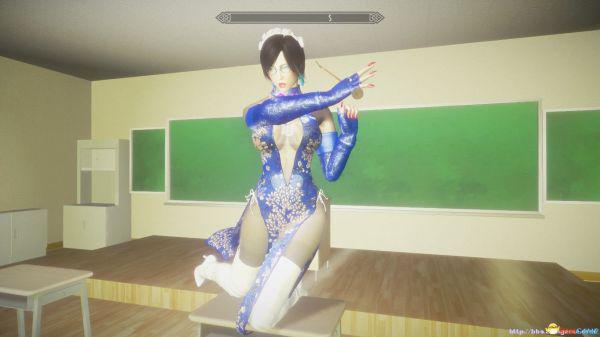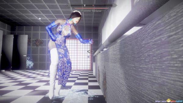 上古卷轴5 真实过膝白靴 高开衩旗袍 全包丝袜MOD