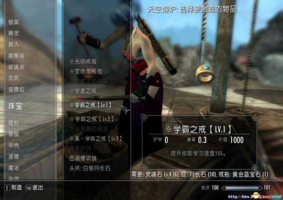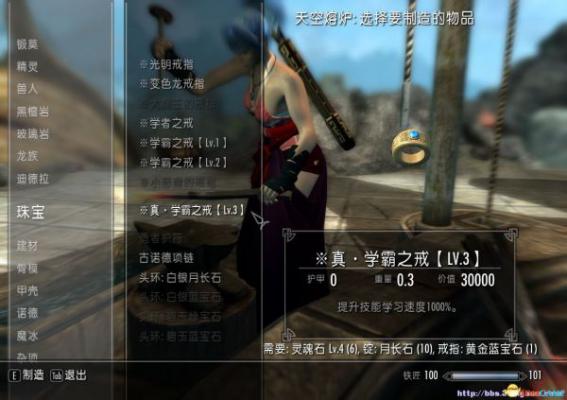 上古卷轴5 装备类MOD 经验之戒学霸之戒与愚者之戒