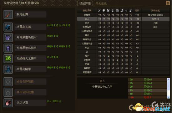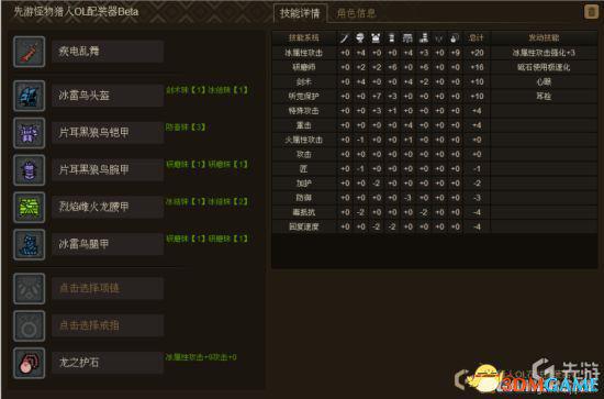 以此为基础,在剩余的护石和4个孔上,还能衍生出很多的配装(主体不变,换武器时只需要换相应的护石和镶入相应珠子的腰带和头盔,)省了每把刀做一套装备的花销。顶配是土豪的事儿(需要顶级护石,每把武器换对应的护石,腰带,头盔),平民用垃圾护石少出5的效果一样牛逼(只需每把武器换相应的垃圾护石和对应的腰带)。
