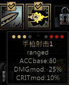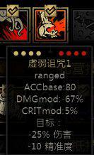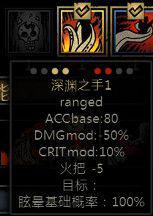 跟恶人差不多 初期都是+伤害+暴击首推 我记得有一个+远程20%精准度的 初期可以用