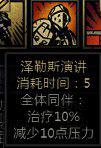 点评:减少压力恢复是英雄单位非常奇缺的技能 加上强大的防御力效果 可以作为击杀怪物只剩下一个后 用此技能减压抗怪 让奶妈和小丑慢慢恢复整体压力和血量