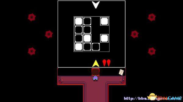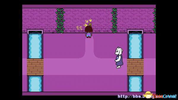 进入到第一个存档点北面的房间,Toriel会亲自把这个房间的谜题给解决,所以直接穿过北面的门即可。