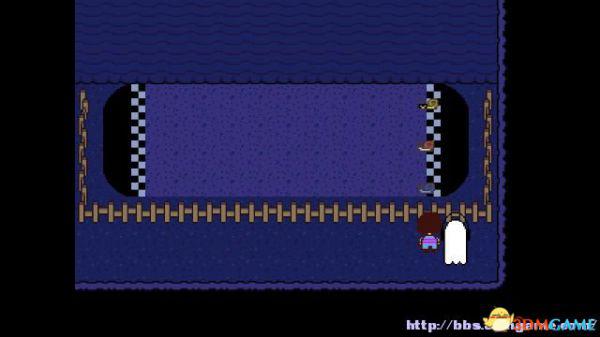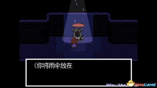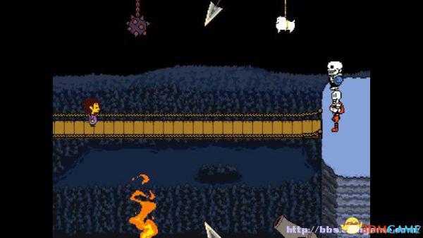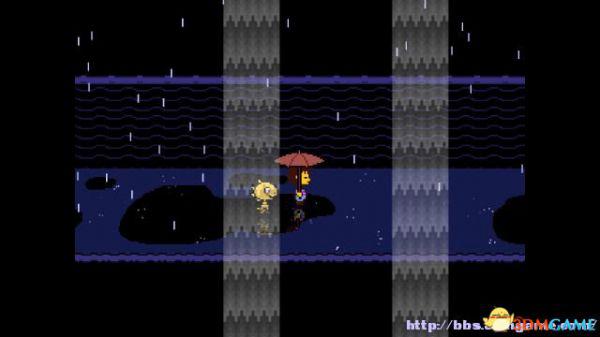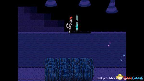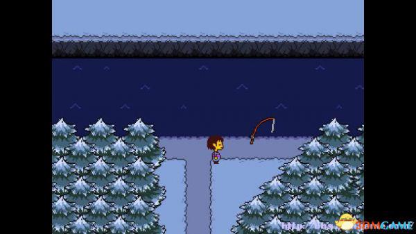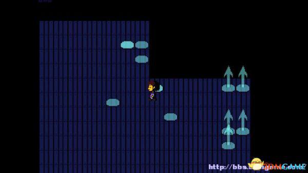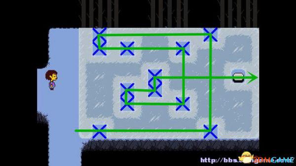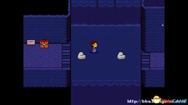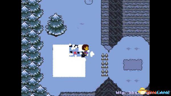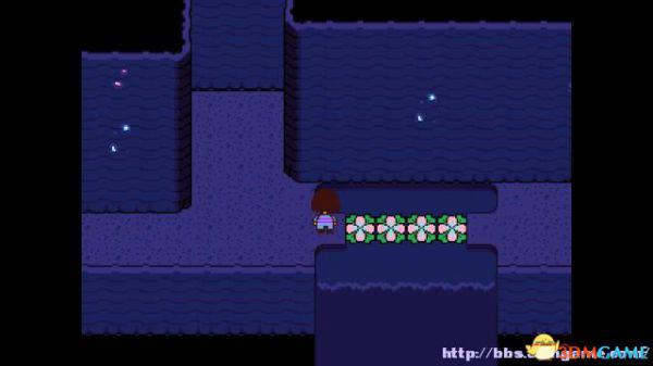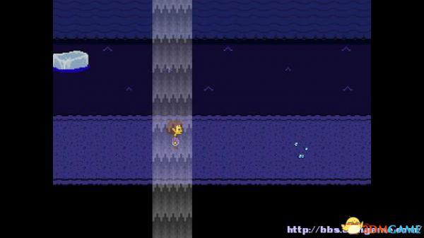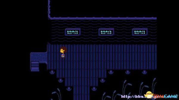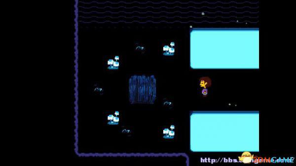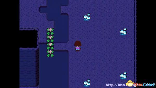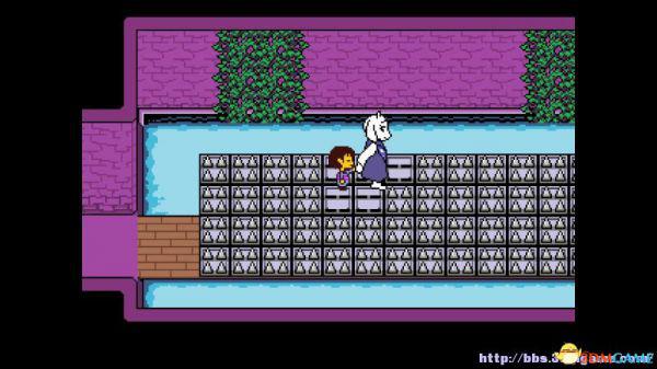 在右面的水池上有一个尖刺陷阱,Toriel会牵着你的手通过这个陷阱区域。