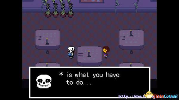 去到走廊的中部会遇见sans,他告诉你,国王是不可以劝说他,你只能够战斗(fight)。