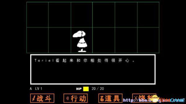 选择行动当中的交谈,你居然与一个假人进行劝服,这令到Toriel很喜欢你,因此你就能胜出第一场战斗。