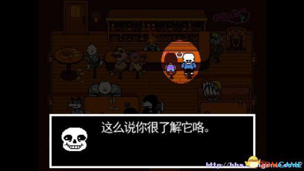 而与餐馆门口的sans对话,他会把你领入到餐馆内就餐。