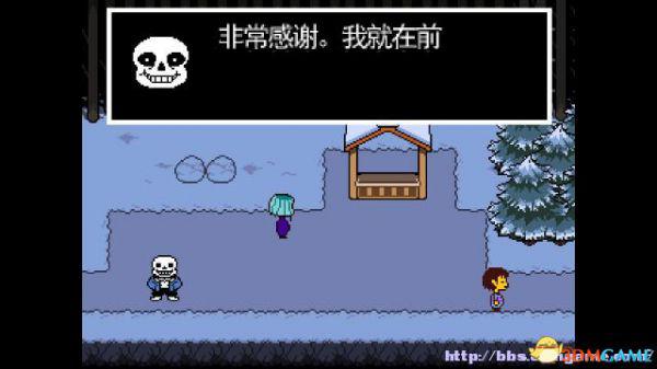 在左侧的小亭子前又会看见sans,他会让你顶起N条香肠,可是你一走路香肠就会掉下来。