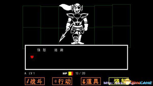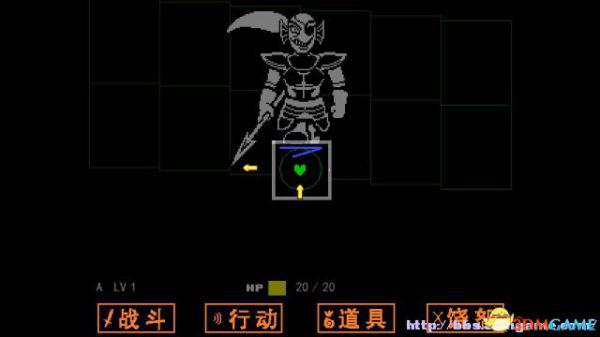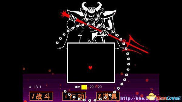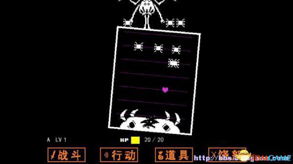 如果敌人选择攻击你(不论你是否选择主动攻击),在屏幕下方会出现一个方框,玩家操控这个心形对方框的图案进行躲避,一旦被触碰就会受到伤害,某类特殊图案即便是触碰了也不会受到伤害(如骷髅的蓝光)。