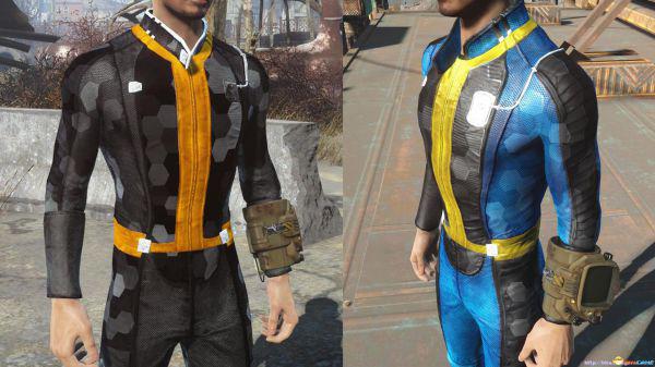 这其实不是一款MOD,而是将5个原来是给避难所连体服换材质的MOD整合成一个独立MOD。在化学台生产两件战后连体服,新旧各一件。可以在装甲工作台改造,能换20多种外观(就是原来那5个MOD的所有纹理都能换),还能换背后的数字。