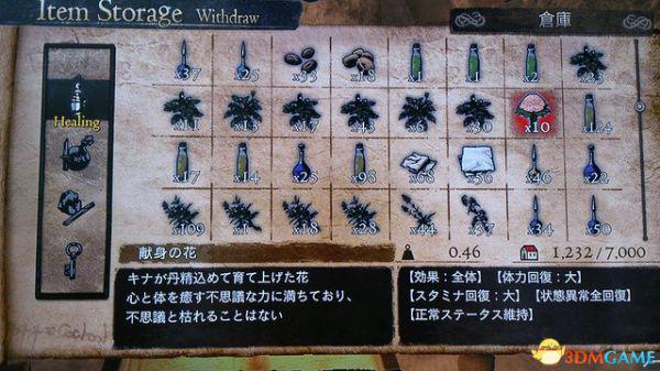 下图为献身之花,物品分类为Healing类,这个不加经验