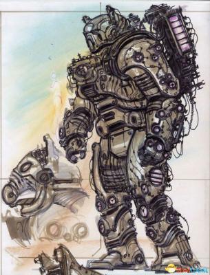 1、T- 45型动力装甲 作为战前研制的最基本款的动力装甲,为了应付大规模战争而量产化:
