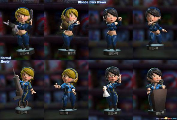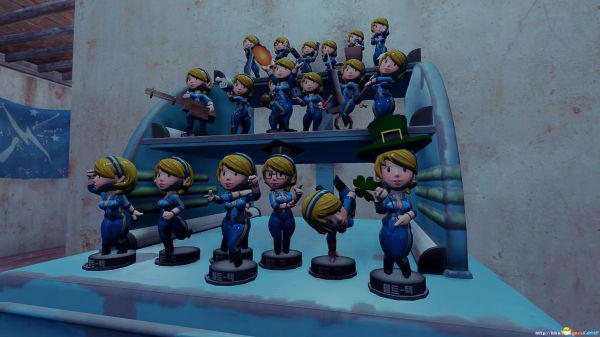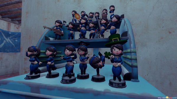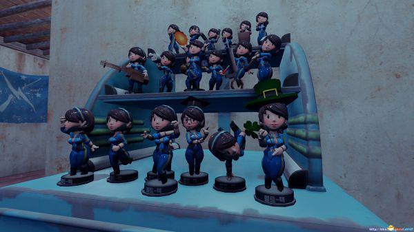 材质替换类MOD,把摇头娃娃换成避难所女孩,有3个版本,果体版,露胸版,完全不露版。下图是完全不露版: